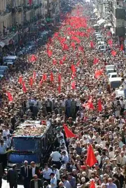 Álvaro Cunhal died in Lisbon in 2005, after several years out of the public eye. His funeral took place on 15 June in Lisbon and was attended by more than 250,000 people.[21][22]