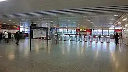 The station includes a ticket hall situated above the tracks, with access to both central Älvsjö and Stockholmsmässan via a pedestrian viaduct. The ticket office has a main sales counter and two additional counters that open during large events at Stockholmsmässan. The station is equipped with numerous combined entry and exit gates. In 2022, it saw approximately 16,700 boardings on a typical winter weekday.[9]