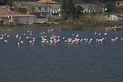 The Bassin de Thau provides a habitat for a variety of wild animals, notably birds such as herons and pink flamingos[5] and a rich marine fauna, including bivalves (oysters and mussels), jellyfish, fish, and algae. Periodically in the spring and summer, the Thau Lagoon has algae blooms of Alexandrium catenella which sometimes reach such high levels that it results in contamination of the lagoon's bivalves with algae toxins.[3]
