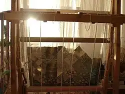 "Throughout the first 16 years of my career, nature was the primary theme of my artwork. My tapestries were prepared with the techniques of classical French gobelins, with dense spacing of the wrap, applying hachure, and delicate transitions of subtle colors. "Castle-Resonance", an exhibition in Gödöllő, inspired me to turn my work to a different artistic direction. The compelling themes of Castle Resonance encouraged me to experiment with unconventional materials providing a new dimension to my artwork. During this period, I completed "Find 2000", a work that inspired a chain of ideas that continued to dominate my future designs. Since then, I remain captivated by the idea of contrasts, particularly, the contrasts between various textures, rustic and fine surfaces, and various materials; the fine and detailed goblin in opposition to sackcloth together on tapestry; silk versus linen; weaving hemp-yarn against gold threads or wool and silk threads simultaneously to create a drastic, yet astonishing effect within each individual piece. While working on this new stylistic effect, I also became interested in thematic elements associated with Eastern cultures and religions, and these novel themes became apparent in my work. Presently, I am mainly focusing on the design of praying-rugs which I named the "Sacred Tapestries". So far, six individual pieces have been completed. They were woven with an interesting and difficult technical approach using wool, linen or silk on every second weft. In my artwork I combine the Eastern and Western culture by incorporating the motives from the oriental rugs. With my "Sacred Tapestries" I would like to send a message that transcends cultural, racial and religious barriers."