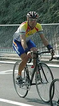 Óscar Freire Gómez (born 15 February 1976) is a Spanish former professional road bicycle racer. He was one of the top sprinters in road bicycle racing, having won the world championship three times, equalling Alfredo Binda, Rik Van Steenbergen, Eddy Merckx and Peter Sagan. In the later years of his career, he became more of a classics rider. He won the cycling monument Milan–San Remo three times, the green jersey and four stages in the Tour de France and seven stages of the Vuelta a España, throughout a successful career.