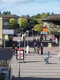 After WWII, development of the region began en masse. Arbejderbo, which was later renamed Stenløsebo, was constructed as a social housing estate near Stenløse station. Several government loan houses were built through the 1950s and the 1960s saw the construction of detached home developments.[3] In Ølstykke near the rail station, the former lands of the Ørnebjerg, Karmsten, and Vejsten were purchased by a construction consortium beginning in 1958.[6] Around 1960, the estates of Gammel Toftegård, Stengård, Stendalsgård, and Kildehom surrounding the old village of Ølstykke were purchased by consortium for residential development. Egedal Center (then Stenløse Center) was constructed in 1967 and completed with a town hall in 1974. This period saw the number of residents in Stenløse grow from 314 in 1921 to 4,263 in 1970, and in Ølstykke from just over 300 in 1965 to 1,111 in 1970.[3] By 1977, Ølstykke's population had balloned to over 12,000 residents.[7]