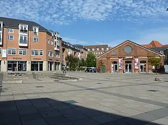 Østerfælled Torv (lit. "Østerfælled Market") is a mixed-use development surrounding a public space by the same name in the former grounds of Østerfælled Barracks in the Østerbro district of Copenhagen, Denmark. It is a result of a redevelopment of the site in the 1990s which preserved many of the old buildings, now used for retail and commercial space as well as cultural facilities, combining them with new apartment buildings.