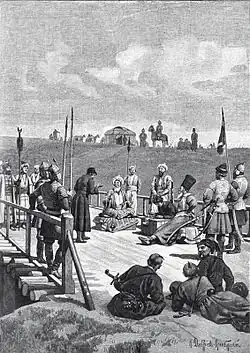 Ğazı II Giray[n 1] (1554 – November 1607) was Khan of the Crimean Khanate from 1588 to 1596 and again from 1597 until his death in 1607. Born in 1554, he distinguished himself in the Ottoman–Safavid War of 1578–1590, gaining the trust of his Ottoman suzerains. He was appointed khan in 1588, after his homeland experienced a period of political turmoil. He failed to capture Moscow during his 1591 campaign against Russia; however, he managed to secure a favorable peace treaty two years later. He was then summoned to support his Ottoman allies in the Long Turkish War, taking part in multiple military expeditions centered in Hungary. In late 1596, the Ottoman sultan briefly unseated Ğazı II Giray in favor of Fetih I Giray after heeding the advice of Grand Vizier Cığalazade Yusuf Sinan Pasha. He returned to power three months later, continuing his reign until his death in November 1607.