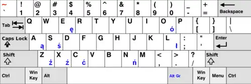 These symbols are included as standard using the keyboard mapping commonly used in Poland. (For entry on other systems, see Unicode input.)
