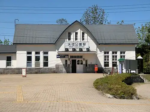 Ōnuma-Kōen Station (大沼公園駅, Ōnuma-Kōen-eki) is a railway station on the JR Hokkaido Hakodate Main Line. It is located in Nanae, Hokkaidō, Japan.