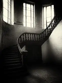 After the collapse of the USSR the estate was transferred to the National Academy of Sciences.[1] Then for almost 20 years, music videos and films have been filmed here. For example, the first Belarusian horror film "Masakra",[1] which received low ratings from critics. During this time that the palace in Zhaludok got most of the damage. For the film walls were painted with artificial soot (this was necessary according to the script), stuck fake decorations (glue is still visible). In 2014, the estate was bought into private ownership.[4][2]