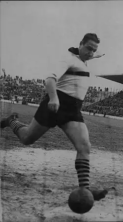 Şükrü Mustafa Gülesin (14 September 1922 – 10 July 1977) was a Turkish football player and sports journalist. Almost two meters tall, he was a strong and quick striker, as well as a free kick and penalty specialist,[1] and played for Beşiktaş, Palermo, and Lazio throughout his career. He scored a total of 226 goals in his entire career, of which 32 came directly by corner kicks (without an assist), more than any other footballer in history.[2] He also played for Turkey at the 1948 Summer Olympics.[3]