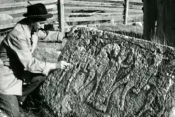 ![]() Portrait of Šefik Bešlagić working on stećak | |