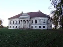The manor initially belonged to the families of Zaviša, Čekavičiai, Navrilkovičiai, and Medekša in the 18th century.[3] From 1780 until World War II, the manor was owned by the Kossakowski family.[4] The manor house is an example of late Classical Revival architecture, featuring two floors with strictly symmetrical forms and a main façade decorated with large pillars.