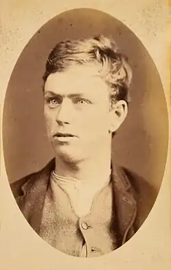 In January 1880 Howard supervised the execution of two bushrangers, Andrew George Scott (known as 'Captain Moonlite') and Thomas Rogan, for the murder of Senior-constable Edward Webb Bowen, who was mortally wounded during a confrontation with police in November 1879 at McGlede's farm near 'Wantabadgery' station, east of Wagga Wagga.[69] The shoot-out between the police and Moonlite's gang resulted in the deaths of two of the bushrangers and the capture of four others, including the leader. Senior-constable Bowen was wounded in the neck during the encounter and died six days later.[70][71] The four captured bushrangers were charged with Bowen's murder. They were tried in Sydney in December 1879; the jury found all four guilty, but recommended mercy for all except Scott. The four bushrangers were each sentenced to death, but after public agitation for mercy the Governor, Lord Loftus, granted a reprieve for two of the condemned men (both sentences commuted to imprisonment for life), leaving the law to take its course for Rogan and Scott.[72][69]