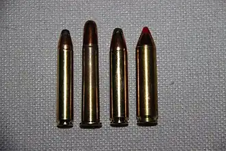 ![]() Comparison of some straight-wall, left to right: .350 Legend, .360 Buckhammer, .400 Legend, .450 Bushmaster | ||||||||