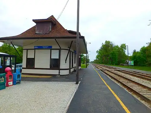 The train station building was damaged by a fire in May 2017 and subsequently demolished. Officials ruled that arson was the cause of the fire.[3][4] On February 19, 2025, IHC Construction Companies received $8.69 million for station renovation, which includes adding a new station house in place of the now-demolished structure.[5][6][7] A groundbreaking ceremony occurred on June 16, 2025.[8][9]