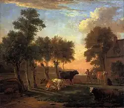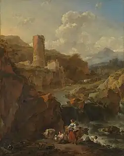 Landscape with ruins, cattle and deer