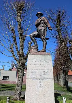 The figure on the 41st Division memorial at Flers is an exact copy of the Royal Fusiliers War Memorial at Holborn in London, with its bronze figure of a Fusilier sculpted by Albert Toft, although the two RF battalions of 124th Bde were the only ones serving in the division.[96][97][98]