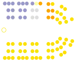 74 seats were created across 66 electorates. 62 electorates returned a single member and four electoral districts had three representatives each.[9] The Liberal party was the only established party structure at the time, many independent conservative MPs coalesced as a semi-formal Opposition under the leadership of William Russell. Key