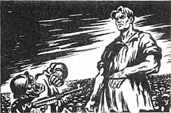 150 000 000 (Russian: Sto pyat'desyat millionov) is a poem by Vladimir Mayakovsky written in 1919–1920 and first published in April 1921 by GIZ (Gosizdat) Publishers, originally anonymously. The poem, hailing the 150-million-strong Russian people's mission in starting the world revolution (represented here as an allegorical battle of the Russian Ivan and the American president Woodrow Wilson, the embodiment of the capitalist evil), failed to impress the Soviet revolutionary leader Vladimir Lenin who apparently saw in it little but a pretentious Futuristic experiment.[1][2]