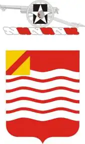 - "On a wreath of the colors, a French 75mm Fieldgun the wheel charged with the shoulder insignia of the regiment (a vertical black oblong with the white star and Indian head of the Second Division) all Proper."