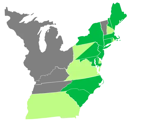 On April 6, 1789, the House and Senate, meeting in joint session, counted the electoral votes and certified that Washington had received electoral votes from each of the 69 electors that had cast votes, and thus had been elected president. They also certified that Adams, with 34 electoral votes, had been elected as vice president.[11] The other 35 electoral votes were divided among: John Jay (9), Robert H. Harrison (6), John Rutledge (6), John Hancock (4), George Clinton (3), Samuel Huntington (2), John Milton (2), James Armstrong (1), Benjamin Lincoln (1), and Edward Telfair (1).[12] Only ten of the thirteen states cast electoral votes; North Carolina and Rhode Island did not participate as they had not yet ratified the Constitution, while the New York legislature failed to appoint its allotted electors in time.[13]
