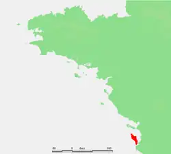 - ^ The active faults involved in this earthquake of which the epicentre is localised in the Bay of Bourgneuf, are not shown on the map. See their representation in: Limasset, Jean-Claude; Limasset, Odette; Martin, Jean-Clément (1992). "Histoire et étude des séismes" [History and study of earthquakes]. Annales de Bretagne et des pays de l'Ouest (in French). 99 (2): 115. doi:10.3406/abpo.1992.3421.