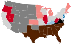![]() Results of the elections: Democratic gain Democratic hold Republican gain Republican hold Confederacy Barred from being seated | ||||||||||||||||||||||||||||||||||||||||||||||||||||||||||||||||||||