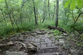 The State Line Marker is a historic boundary marker on the state line between Arkansas and Oklahoma. It is located down a path a short way north of a parking area on Talimena Scenic Drive in Ouachita National Forest, about 17 miles (27 km) northwest of Mena, Arkansas. The marker was originally an octagonal cast iron pipe, with the legend "48 M" on the north face (signifying its marking of the 48th mile), "1877" on the south side (the year of the marker's erection), "ARK" (for Arkansas) on the east side, and "CHOC" (for Choctaw Territory) on the west side. The pipe was mounted in a stone and mortar base installed by the United States Forest Service in 1974. The marker was placed in 1877 following a series of controversial surveys to demarcate the border between Arkansas and what was then Indian Territory.[2]