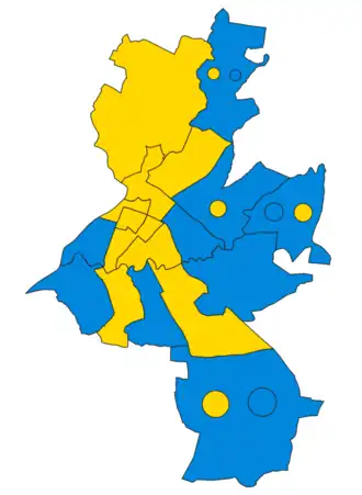| Party | Votes | Seats | Full Council | |||||||