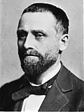Harrison's aspirations of power in the Democratic Party came in to conflict with former Governor John Peter Altgeld.[5] Despite having lost his bid for reelection as governor in November 1896, Altgeld was a prominent national political figure,[6] and had, since early 1896, held fragile control over Illinois' Democratic Party.[5] Altgeld had been the most prominent Democrat in the state, and had strong advocacy of free silver and an obtained a pro-labor record as during his governorship.[5] Altgeld held control over the state's Democratic Central Committee, and the committee's chair James Orr was largely a puppet of his.[5] Altgeld also was supported by reformist Chicagoans, such as Clarence S. Darrow, Murray F. Tuley, and Edward Fitzsimmons Dunne.[5] Altgeld also had loyal support from many labor leaders and Chicago politicians.[5] As leader of the Illinois Democratic Party he had selected Harrison in 1897 to be the party-backed candidate for mayor. However, a divide between them arose shortly afterwards.[6] Like Harrison, Altgeld also aspired to create a unified Democratic organization of his own.[5] Thus, the two politicians became the heads of rival factions, not initially centered around ideology (each were pro-silver and had supported William Jennings Bryan), but rather centered around each of them as political personalities, and their quest for political power.[5] The personal divide between the two was exacerbated by disagreements about the traction debate and whether or not municipal ownership was the solution to it.[6] However, for a while both were able to keep their feelings about each other private.[5] Harrison further upset Altgeld by, at the request of Tammany Hall, campaigning for the Democratic mayoral nominee in the 1898 New York City mayoral election, who was running against Altgeld's longtime friend Henry George.[5] Their discontent with each other became public during an early 1898 dispute over when to schedule the state Democratic convention.[5]