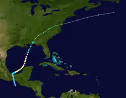 | Four | October 3–11 | Category 2 hurricane | 105 (165) | 970 | Mexico, Gulf Coast of the United States (Florida), East Coast of the United States | Minor | None | |||