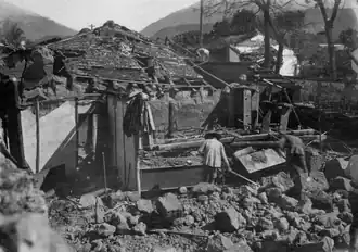 The series consisted of four main damaging quakes and dozens of smaller quakes which were not so damaging. The first major quake, on 28 August 1916, was the strongest at magnitude 6.8, but the hypocentre was relatively deep in the Earth's crust. The most deadly quake in the series came on January 5 of the following year, registering at 6.2 on the Richter scale with a shallow hypocentre, killing 54 people.[1]