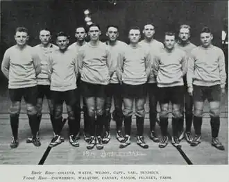 The 1919–20 Fighting Illini men's basketball season was the final of eight seasons for head coach Ralph Jones. This group was slightly better than the previous as they bounced back from the first losing season of Jones' career and finished third in the Big Ten. The campaign began with a six-game home winning streak; however, over the next seven games, the team posted only three wins, while losing four. After Jones left Illinois, he went to Lake Forest Academy in Lake Forest, Illinois. He coached both basketball and football at the academy for 10 years. His football team won 76 games and lost six in his ten years. His basketball teams had a ten-year record of 94 wins and 9 losses.[1] The record the Illini had at the conclusion of the 1919–20 season was nine wins and four losses overall with an eight-win, four-loss conference mark. The starting lineup included captain K. L. Wilson, J. B. Felmley, Julian Mee and P. C. Taylor rotating at the forward positions, All-American Chuck Carney at center, and Charles Vail, Burt Ingwersen, and Laurie Walquist as guards.[2]