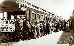 - The first passenger train of the San Diego & Arizona Railway "arrives" in San Diego from El Centro, California, for the official line opening ceremony.[5][6]
