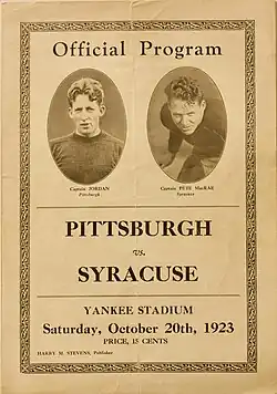 - ^ Lovett, C. A. (October 21, 1923). "Syracuse Outkicks Pitt in Tight Clash". Daily News (New York). p. 58 – via Newspapers.com.