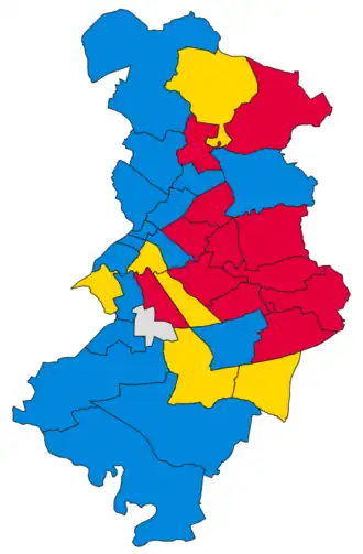 | Conservative Party | 57,896 (42.0%) | 16 (45.7%) | 16 / 35
