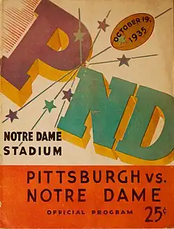 - ^ "Official 1935 University of Pittsburgh Football Roster". Official Football Program for University of Pittsburgh Versus Notre Dame. Notre Dame Football Program Committee: 29. October 19, 1935.