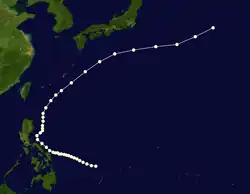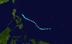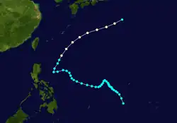A storm developed in the Philippine Sea and east of Visayas, Philippines on May 10. It strengthened into a typhoon during its lifecycle but it is unknown of where it reached its intensity. The storm finally dissipated on May 20.[9]