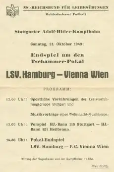 The 1943 Tschammerpokal Final decided the winner of the 1943 Tschammerpokal, the 9th season of Germany's knockout football cup competition. It was played on 31 August 1943 at the Adolf-Hitler-Kampfbahn in Stuttgart.[2] First Vienna won the match 3–2 against LSV Hamburg after extra time, to claim their 1st cup title.