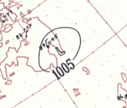 | Peak intensity | Winds not specified; ≤1005 hPa (mbar) |
