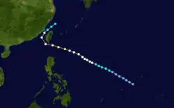 Typhoon Queenie was a storm that formed over the northeastern part of the Philippines on August 5, 1945, and dissipated on August 9, 1945. It had 1-minute sustained winds of 140 km/h (90 mph) and a pressure reading of 976 mb. Queenie formed close to the Philippines and made its way over the northern part, eventually making its way back to the sea where is later dissipated. Damages and fatalities are unknown.