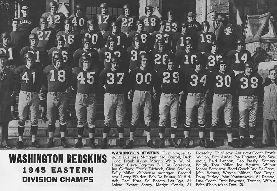 The 1945 Washington Redskins season was the franchise's 14th season in the National Football League (NFL) and their 8th in Washington, D.C. The team improved on their 6–3–1 record from 1944. They won the Eastern division title with an 8–2 record but lost the NFL championship game to the Cleveland Rams, 15–14.