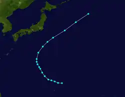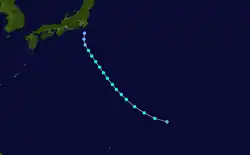 Libby formed southeast of Japan on September 29. The storm moved west as it quickly strengthened into a Category 4 typhoon. It later weakened and turned northeast.