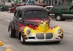Hot rodding was about more than raw power. Kustom Kulture started in the 1950s,[29] when artists such as Von Dutch transformed automobile pin striping from a seldom-used accent that followed the lines of the car into a freestyle art form. Von Dutch was as famous for his "flying eyeball"[29] as he was for his intricate spider-web designs.[30] As the decade began, hand-drawn pin striping was almost unheard of, but by 1958 it had become a popular method of customizing the looks of the hot rod.[30] As the decade progressed, hot rodding became a popular hobby for a growing number of teenagers as the sport literally came to Main Street.[31]