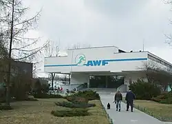 Building of Poznań University of Physical Education. According to one source, the building (constructed in 1973) stands on the site where the plane crashed in 1952