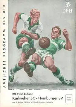 The 1956 DFB-Pokal Final decided the winner of the 1955–56 DFB-Pokal, the 13th season of Germany's knockout football cup competition. It was played on 5 August 1956 at the Wildparkstadion in Karlsruhe.[2] Karlsruher SC won the match 3–1 against Hamburger SV, to claim their 2nd cup title.