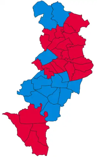 | Labour Party | 85,104 (53.7%) | 24 (63.1%) | 24 / 38
