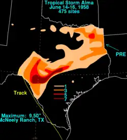 - ^ a b Preliminary Report on Tropical Storm Alma June 14–15, 1958 (GIF) (Report). United States Weather Bureau. 1958-06-17. Retrieved 2013-03-06.