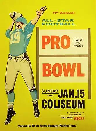 The 1961 Pro Bowl was the NFL's eleventh annual all-star game which featured the outstanding performers from the 1960 season. The game was played on January 15, 1961, at the Los Angeles Memorial Coliseum in Los Angeles, California in front of 62,971 fans. The final score was West 35, East 31.[1]
