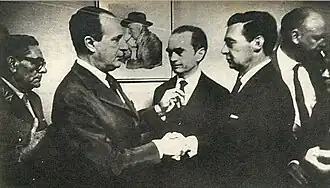 For months before the coup, Auro de Moura Andrade participated in the conspiratorial group of Marshal Cordeiro de Farias and São Paulo Governor Ademar de Barros.[63] In his memoirs, he justified his action at the time of the coup: "no nation can sleep without a president"; "What I needed was to dismiss the president, in order to liberate the III Army and relieve it from fighting against those who had risen up in defense of constitutional integrity".[64] On April 2, the Third Army's adhesion to the coup was still incomplete.[65] Auro also had a personal motive: in July 1962, during the parliamentary regime, the president nominated him as Prime Minister, under the condition that he kept a letter of resignation. Two days later, while Auro was concluding the negotiations for his ministry, Goulart used this letter to remove him from his post.[66]