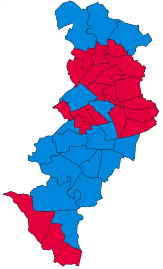 | Labour Party | 52,327 (45.1%) | 20 (52.6%) | 20 / 38