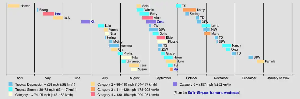 - ^ a b c "Typhoon 23 (Ida) Best Track". Joint Typhoon Warning Center. United States Navy. 1967. Archived from the original (.TXT) on March 9, 2015. Retrieved March 5, 2015.